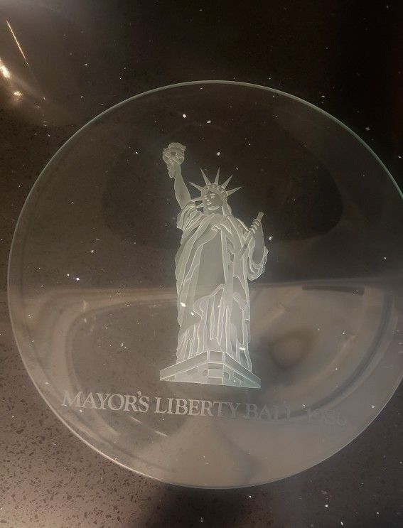Mayor's Liberty Ball 1986 collectible glass plate display like new no scratches