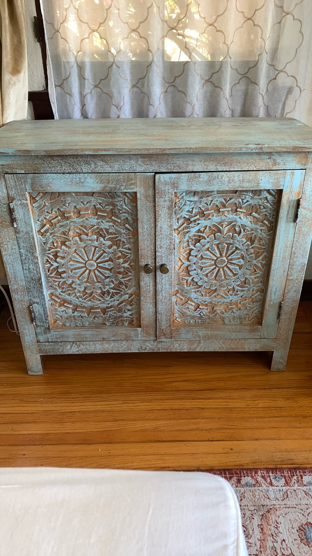 Beautiful teal rustic cabinet two shelves