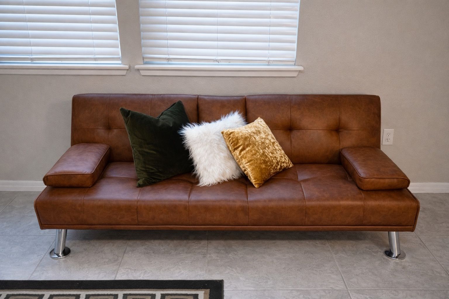 π¨ URGENT MOVING SALE β NEED GONE ASAP π¨ Beautiful modern sofa bed that easily converts into a bed β¨ Perfect for: β’ Guests β’ Small apartments β’ Studios β’ Multi-use spaces β¨ Includes: β’ Sofa bed (folds down into bed) β’ 3 stylish accent pillows (velvet + faux fur) β¨ Features: β’ Sleek modern design β’ Comfortable seating & sleeping β’ Space-saving β’ Easy conversion This is a great 2-in-1 piece β couch by day, bed by night. Only selling because Iβm relocating. π¨ First come, first served π Pickup only β° Available today
