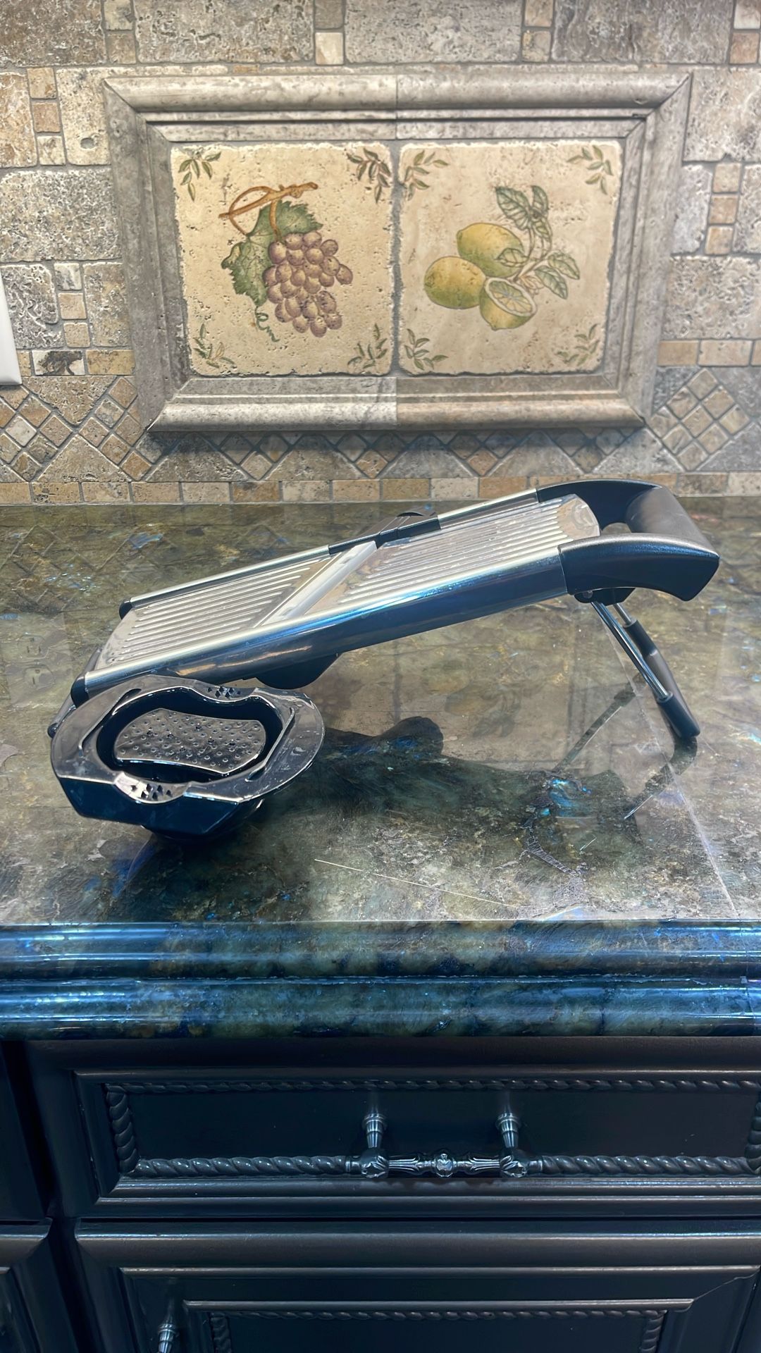 Used but great condition. Has a protective cover on the blade. Adjustable knob, fruit/vegetable gripper.