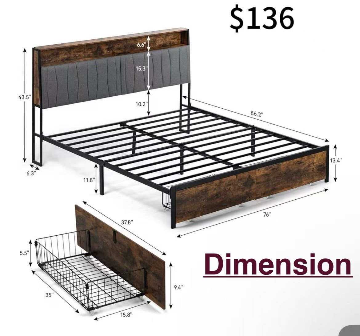 King Size COMHOMA Platform Bed Frame with LED Lights and Charging Station, Storage Headboard and Footboard Drawers, No Box Spring Needed, Rustic Wood Look 🙏pay $136.00 + sale tax by cash or card in person (final sale). ✌️Not Accept price negotiation through thIs OfferUp App ; The price is as marked ✌️Pick up at showroom : zip code 80231 or 80223 or 80241 depending on item ✌️Hour : from 10 am to 7 pm(Monday CLOSE) ✌️Pick up only, No delivery , No shipping ✌️please stop by ASAP after all info(including address) provided OR ✌️double confirming “available or not” again if the address info is already provided for days.. 🙏can NOT relocate inquired item to other showrooms but you can wait to see if it is available in other showrooms (current item location zip code can be distinguished by 🥨😀✌️) ✌️ ALL furniture are new and not used at all. However, due to few careless or overweight handling during shipping, transport or assembly, few of them will have mild scratch or dents. So does some inventories in the box. We try our best to photo those in pictures after assembling them. The price is adjusted based on those issue that we notice. ✌️ Item sold as the picture (it is assembled ) or it will be mark as in the boxes 🙏NO RETURN, NO REFUND, NO EXCHANGE