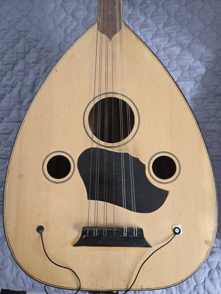 Selling a high-quality Oud that was played and owned by a professional oud player who was also a teacher and author of instructional books on how to play the oud. This instrument was used by someone who understood tone, balance, and proper care. The oud is used but in excellent condition and is fitted with a custom electric pickup, allowing you to plug directly into an amp or sound system for live performance or recording. Condition: Used, very well maintained Pickup: Custom-installed electric pickup (ready to plug in) Background: Owned and played by a professional oud instructor and author Includes: Hard case Best for: Performing musicians, serious students, studio or live use This is a serious instrument, not decorative. Plays clean, sounds warm, and is stage-ready. Message me for photos, video, or questions.