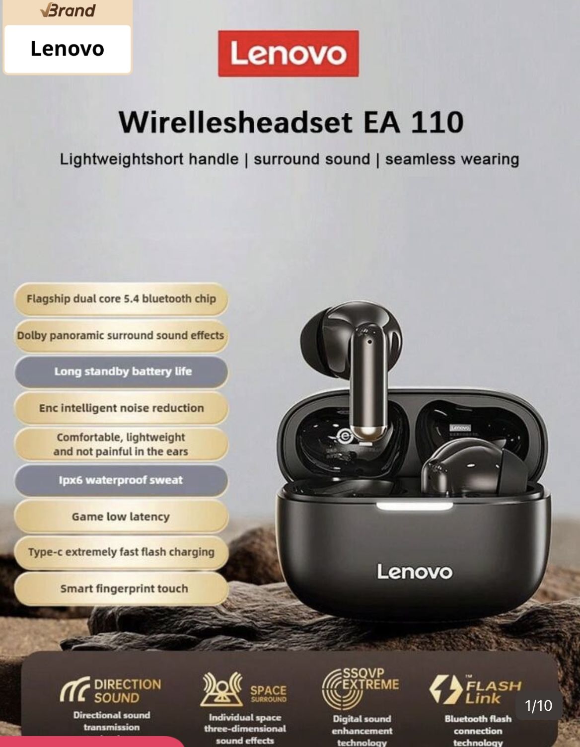 Lenovo EA110 Wireless Headset Bluetooth 5.4 Intelligent Touch Control Headphones Long Lasting Battery Life Support Android