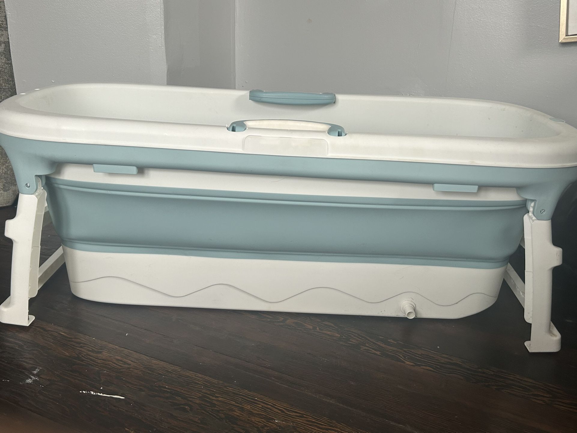 Used portable tub. Cleaning recommended. Well I hope you would do that anyways.