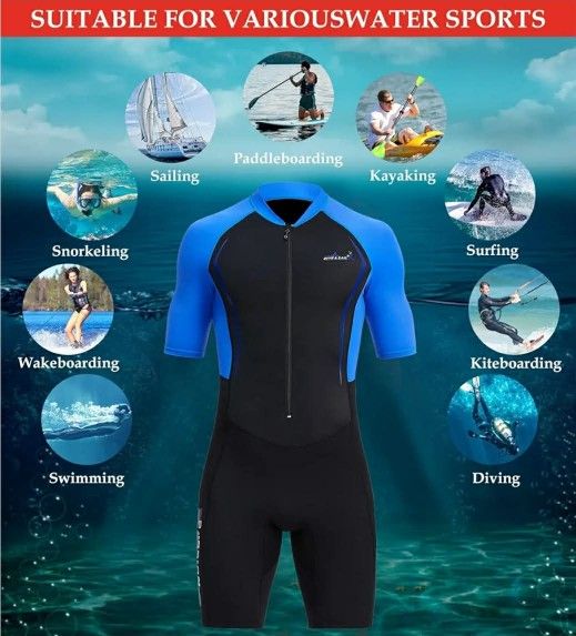 DIVE & SAIL Adult 1.5mm Shorty Wetsuit Neoprene Diving Suit for Snorkeling Swimming Surfing Canoeing Size Large. New