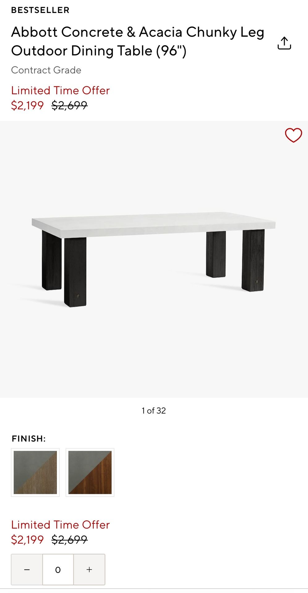 For someone that can DIY a gorgeous indoor/outdoor table and source a top. This listing is for the table legs only!! Brand new in box Pottery Barn Abbott chunky leg table legs and hardware in black. This table is a best seller and no longer offered in this color combo. SUSTAINABLE DESIGN Expertly crafted of FSC® wood with mortise-and-tenon joinery for superior strength and durability. Made with FSC®-certified acacia wood. Your purchase helps support healthy forests and ecosystems worldwide for generations to come. Kiln-dried wood and mortise-and-tenon joinery provide superb strength and durability. Includes adjustable levelers for uneven floors. Dimensions OVERALL: 96" l x 44" w x 30" h TOP: 96" l x 44" w x 3" th CLEARANCE UNDER TABLETOP: 25.5" h DISTANCE BETWEEN LEGS: 88" at sides, 40" at front WEIGHT CAPACITY: 625 lbs This table brand new is $2700. Asking $500 for the legs.