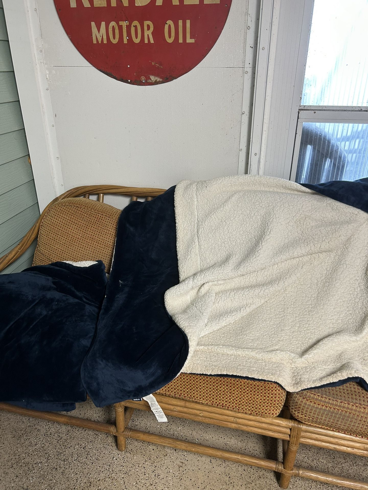 2 Twin Sherpa velvet comforters in Blue XL twin. Very soft. Must sell