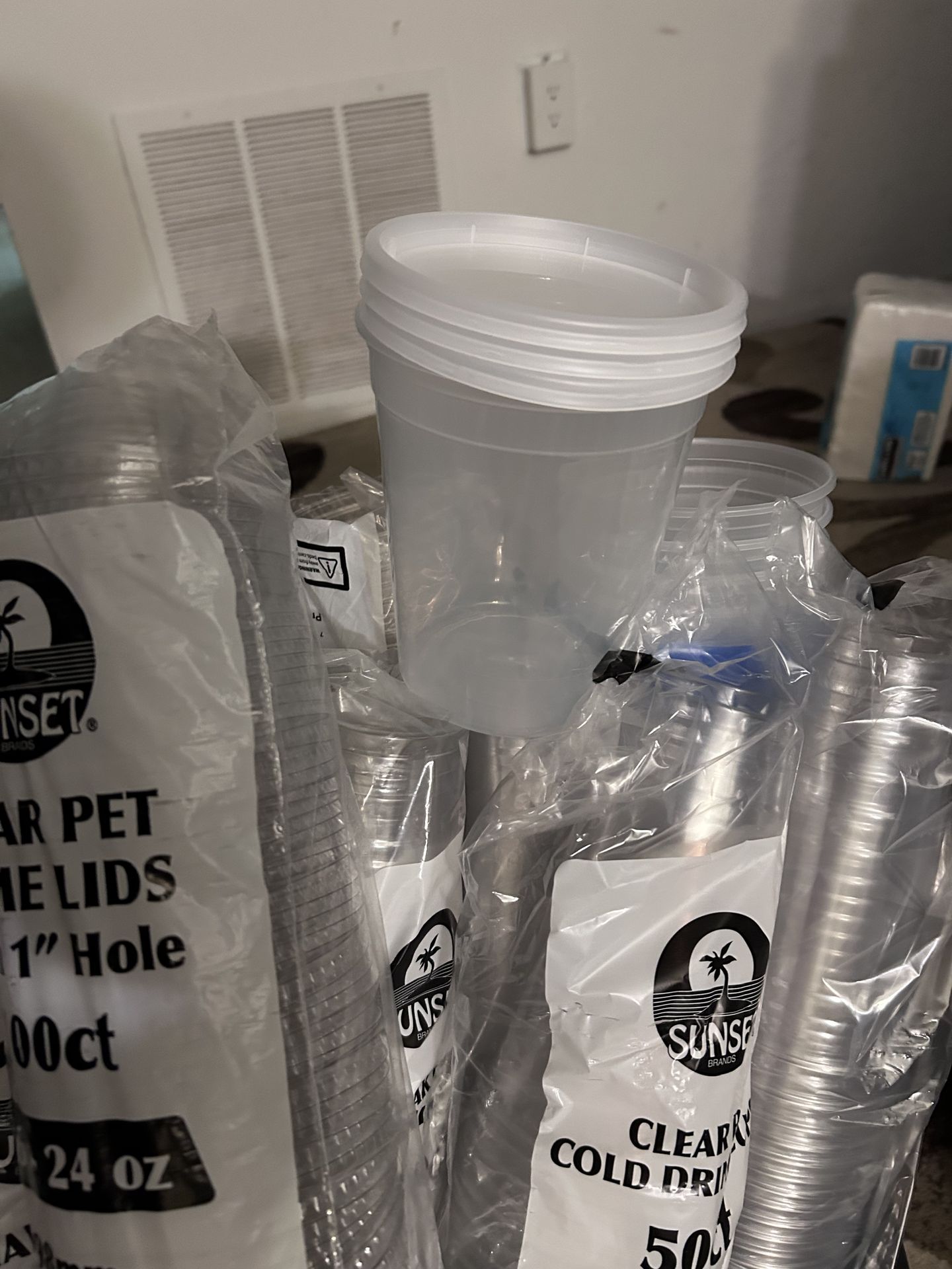 Vasos de plastico 24 oz 50ct cada uno Todo lo que está en el basquet por $25