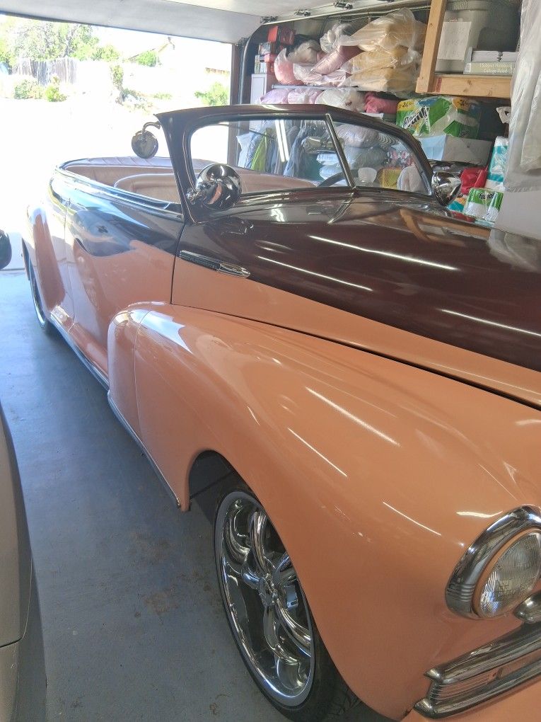 Straight 6 cylinder 216 Engine , 3 speed shifter on the floor , steering has play, it's a cruiser , body has cracks, paint is fair , Title in hand, low profile tires, chrome wheels.