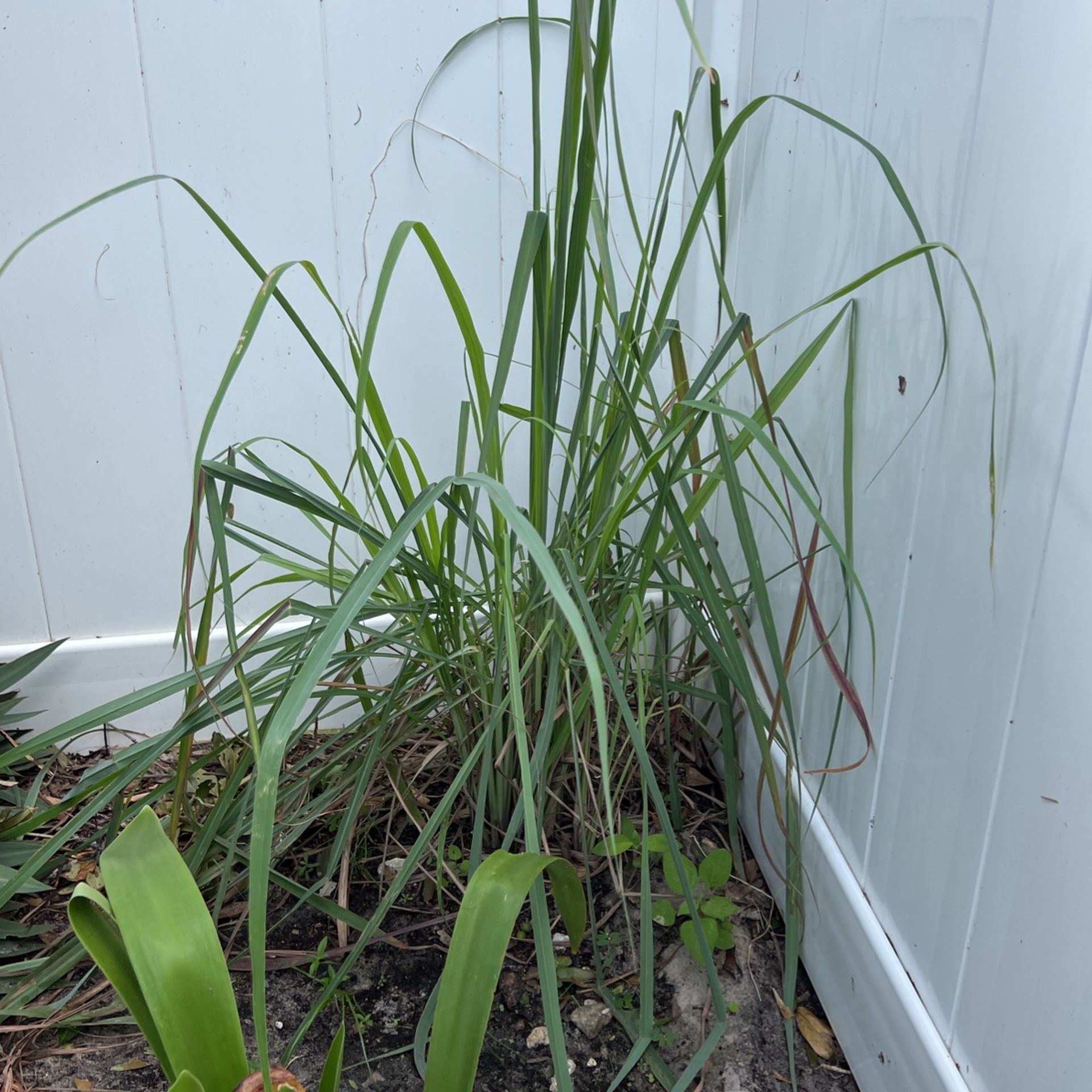 Fresh lemongrass leaves. Due to the hurricane everything got knocked and bent.