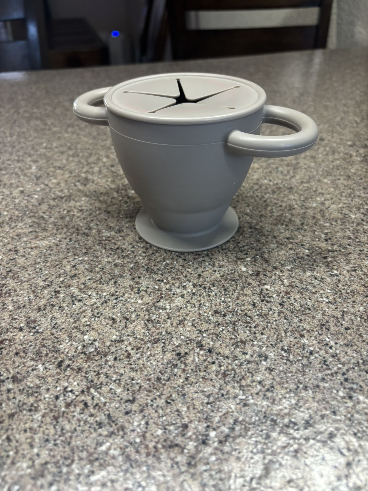 Tall no spill snack cup in perfect shape! these are wonderful to have! No more spills of snacks from cups tipping over! My child out grew located in Modesto