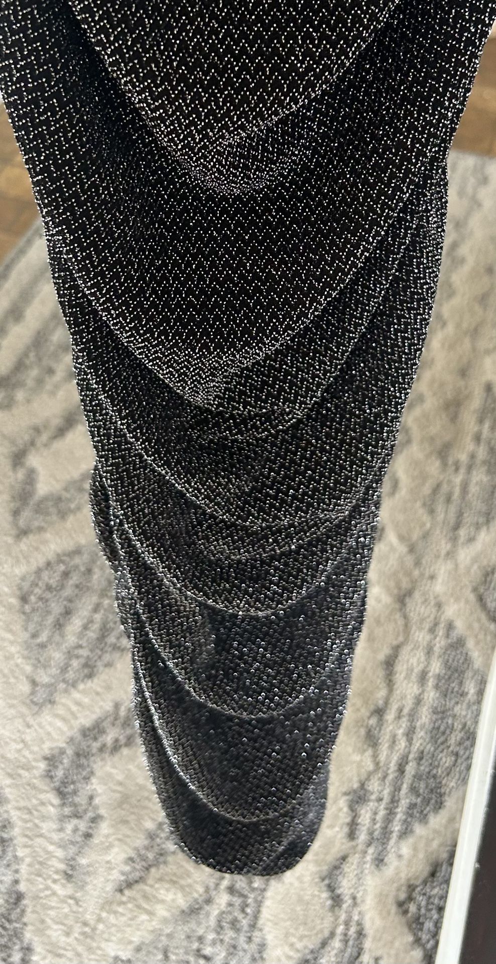 New Blk glitter, scrunched sides , stretch strappy dress size Small, New