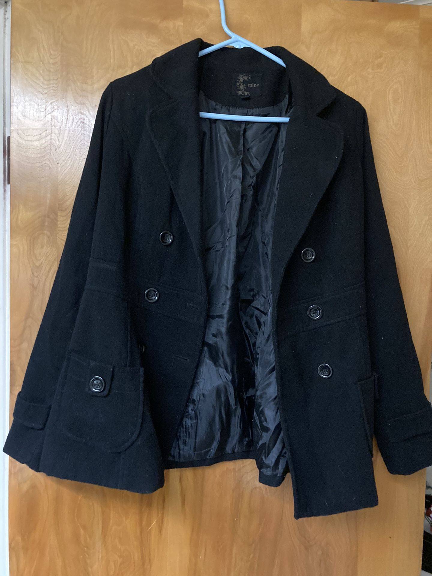 Pea coat size L women by Mine Double breasted. Fully lined. Polyester/cotton/wool blend. In great condition