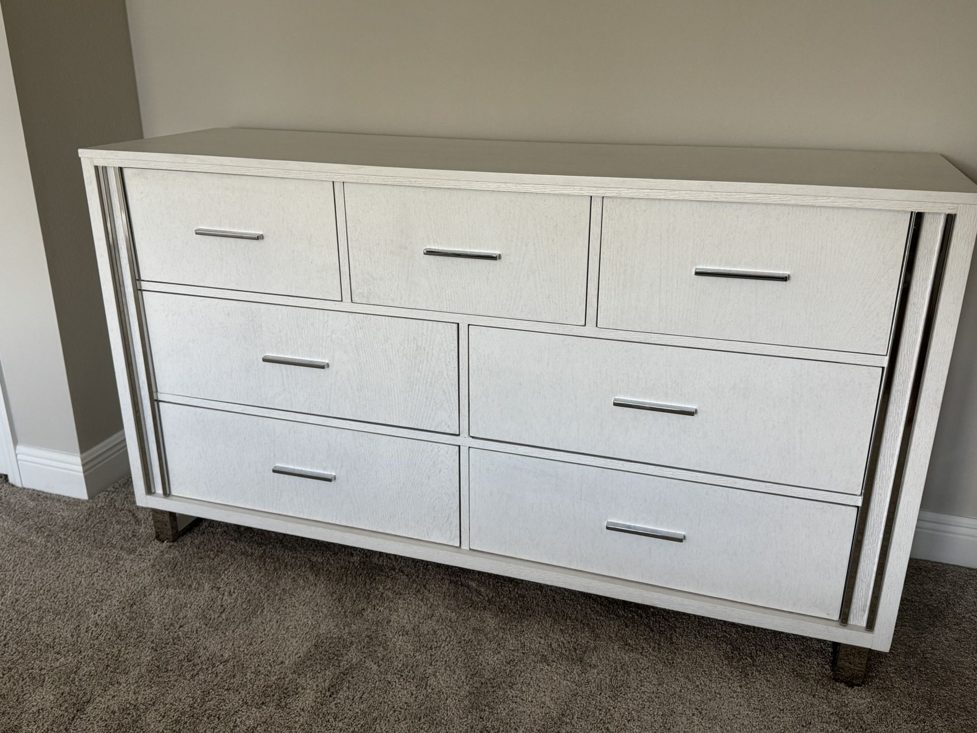 Large modern 7 big drawers dresser made up of solid wood. It is part of a king size bedroom set. Used only for a few months, selling due to a move out