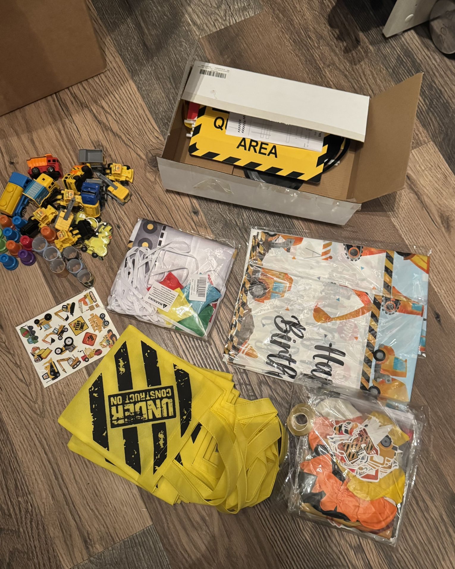 Assorted decorations: table cloths, ~9 goodie bags, bean bag game, balloons, birthday sign, etc.