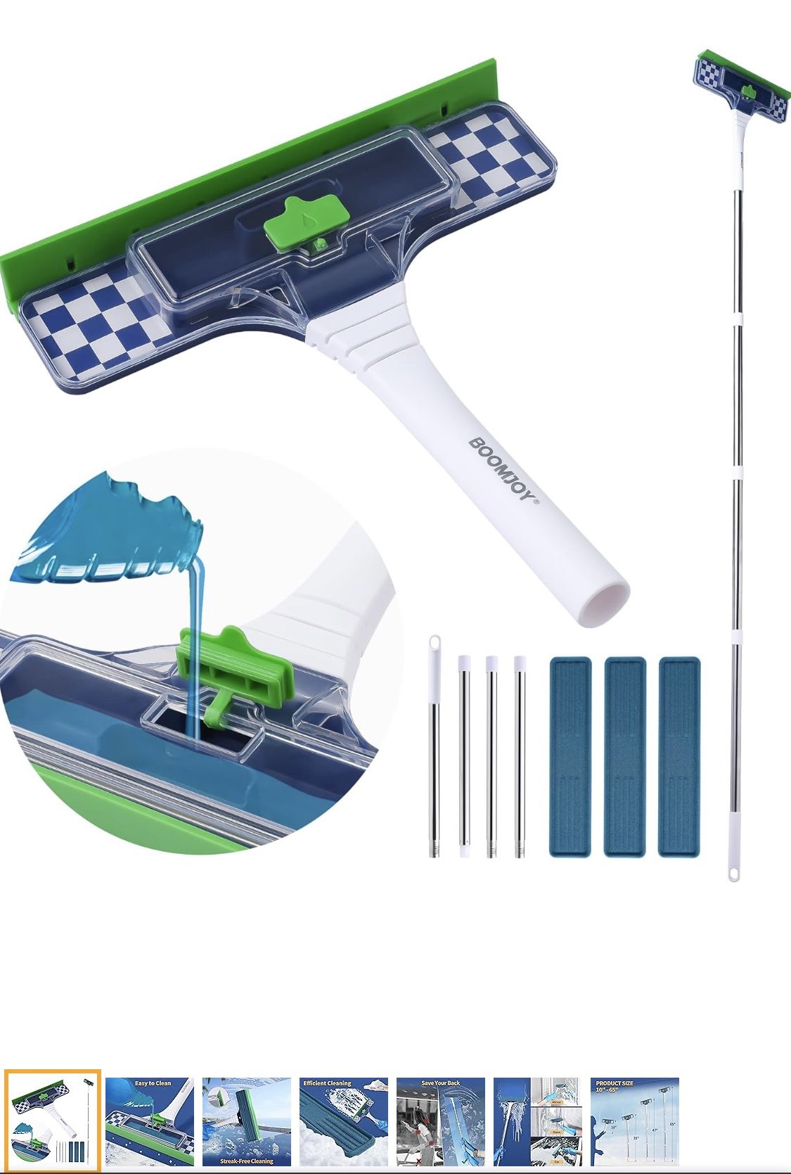 Lower price if you buy more! I currently have 8. EASY TO CLEAN: Enjoy hassle-free window cleaning with our innovative design that comes equipped with a built-in liquid tank. Simply pour cleaner into the tank, and you're ready to achieve sparkling clean windows effortlessly STREAK-FREE CLEANING: Bid farewell to streaks and smudges! Our window scraper ensures streak-free results, leaving your windows crystal clear and gleaming. Achieve professional-quality cleanliness with every swipe 2-IN-1 WINDOW CLEANER TOOL: Experience the convenience of dual-use window cleaning tools. Our product combines a reliable window scraper with an efficient cleaning sponge, simplifying your cleaning process and saving you time and energy 65" EXTENDABLE POLE: Made of durable stainless steel, this pole adjusts to four lengths (22", 35", 47", 65") for versatile use. Tackle hard-to-reach areas with the extended length or use the 10" handheld option for precision and control in closer cleaning WIDELY USE: Ideal for windows, glass doors, mirrors, and other smooth surfaces. This versatile 2-in-1 window cleaner tool is perfect for keeping various surfaces in your home or office spotless and gleaming, making cleaning a breeze