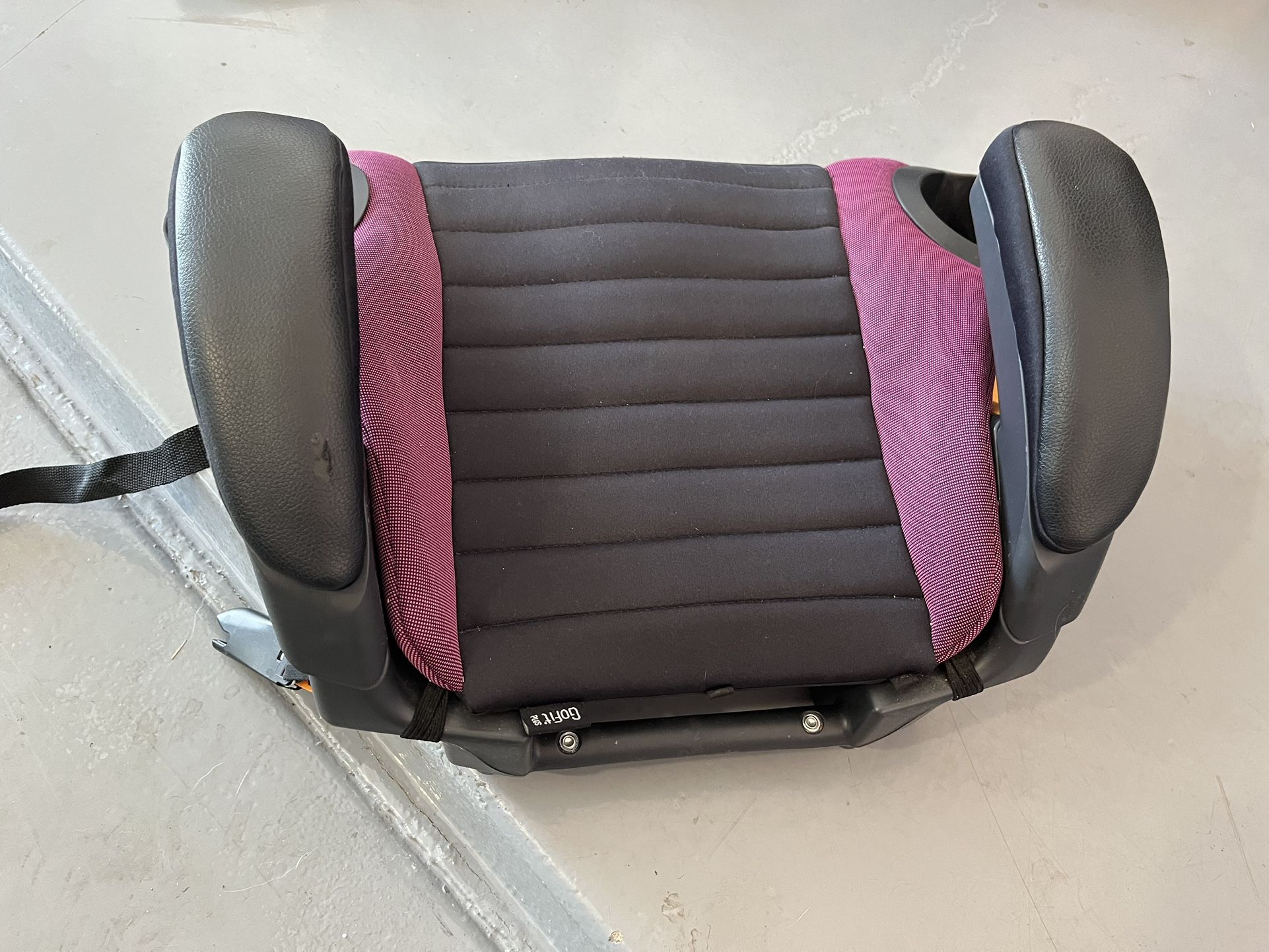 Graco booster seat with anchor clips, seat belt guide and cup holders