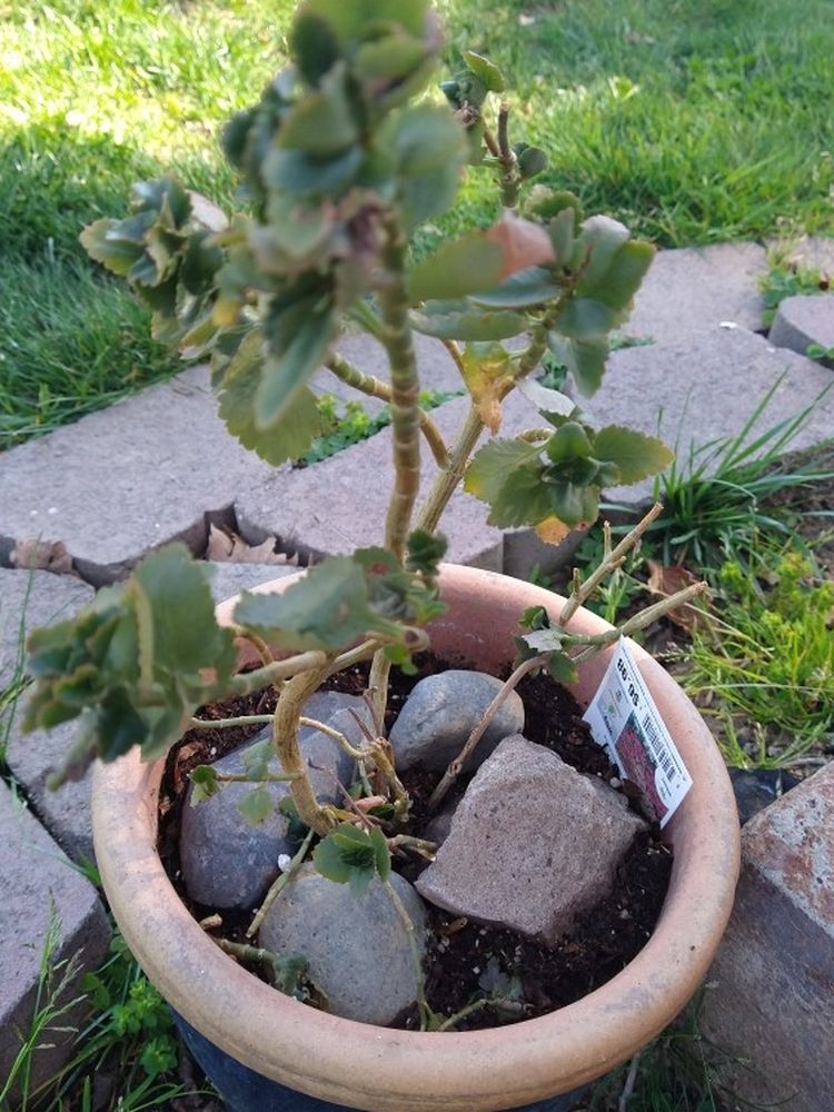 Painted blue clay pot with healthy plant soon to flower. Indoor or outdoor. Full sun. Partial sun Available for Pick up