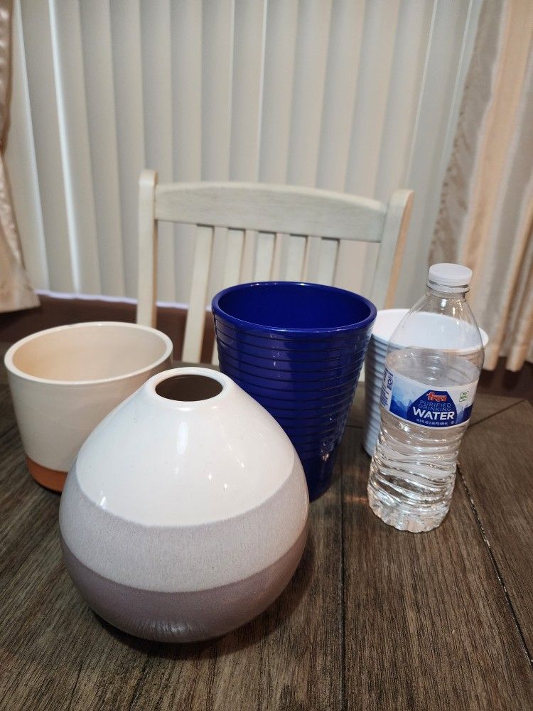 4 ceramic pots one has a little discoloration Water Bottle there for size reference 59th Ave and Northern Pick up only Cash only