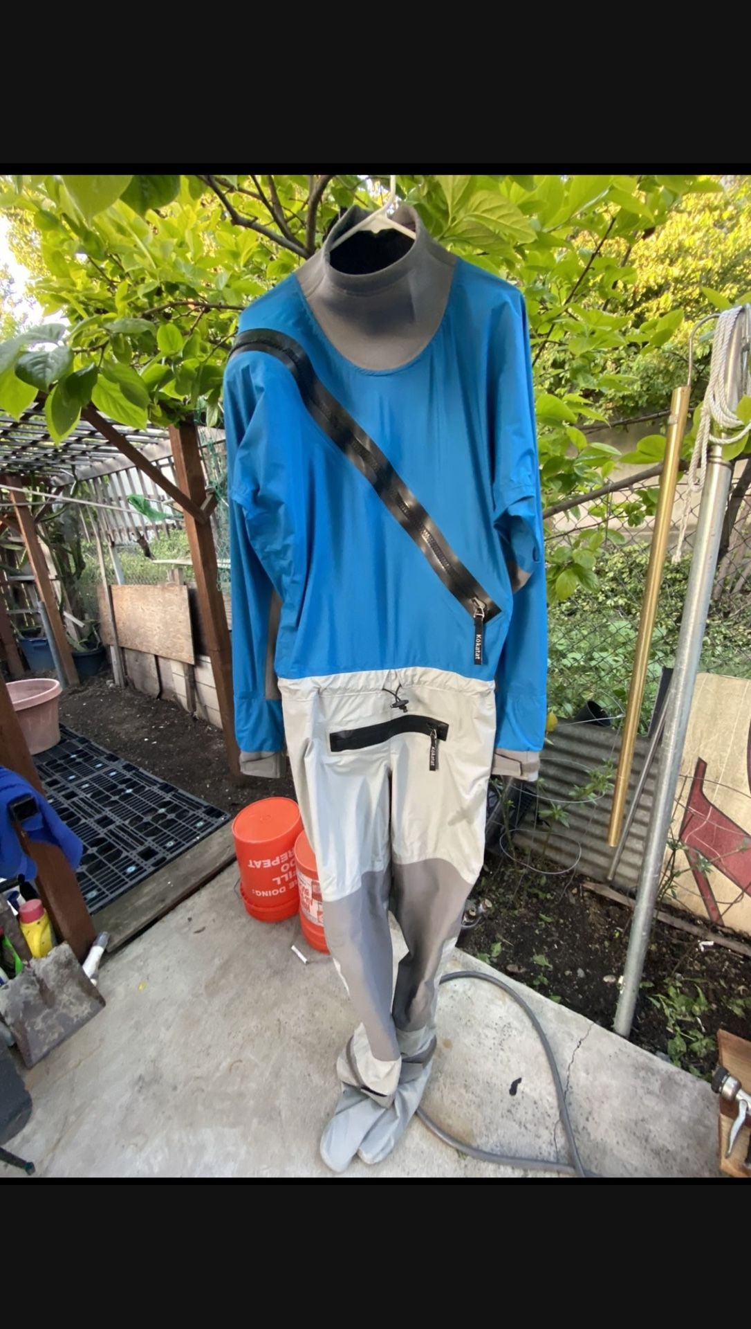Got a kokata semi dry suit for sale. Size large. Suit has full socks so no water will get in. Also has latex wrist seals so no water will get in from there either. Neck seal is neoprene with a  cinch cord we’re you can tighten it to your comfort and water tightness. Some water may get in from there but very little. It’s also a good thing because you can loosen the cord and lease some air from the suit if it ever gets to stuffy. Had it for 2 seasons. Always washed with fresh water and soap. Suit always was hung to dry. Never folded once. Well taken care off.