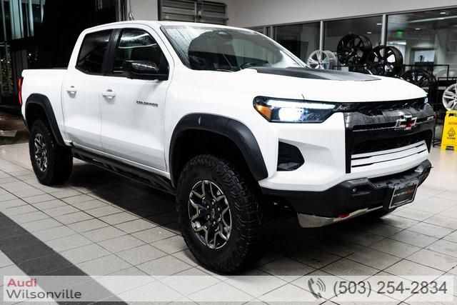 The 2024 Chevrolet Colorado ZR2 brings an unmistakable sense of adventure to every drive, wrapping rugged capability in a Summit White body and a Jet Black/Artemis leather interior that feels both tough and upscale. With a clean CARFAX report showing no accidents or damage, this ZR2 arrives with added peace of mind and the confidence of well-documented service history.Under the hood, the 2.7L Turbocharged DOHC engine delivers 310 horsepower and a broad sweep of torque that makes highway merging, towing, and trail climbs feel effortless. Paired with an 8-speed automatic transmission and 4WD, the ZR2 Off-Road Package, Multimatic Jounce Control Dampers, and off-road-ready suspension help it soak up uneven terrain while staying planted and composed. AEV heavy-duty front and rear bumpers, bead lock-capable wheel options, and LPO recovery gear reinforce the Colorado's go-anywhere attitude, while safari-bar bumper features, winch compatibility, and available off-road lighting deepen its trail-first capability.Inside, the Colorado ZR2 blends practicality with premium comfort. Heated and ventilated front seats, a heated steering wheel, and perforated leather-appointed seating provide long-mile comfort in every season. A power driver seat with memory, a power sliding sunroof, and dual-zone automatic climate control elevate the cabin experience even further. Technology takes center stage with the 11.3-inch Advanced Color LCD, Bose 7-speaker premium sound, wireless Apple CarPlay and Android Auto, wireless device charging, and an available navigation system that makes road trips and trail tracking equally intuitive.Safety and driver confidence come standard, thanks to Chevy Safety Assist, Adaptive Cruise Control, Automatic Emergency Braking, Lane Keep Assist with Lane Departure Warning, and HD Surround Vision. Additional trailering and maneuvering safety technologies, such as Blind Zone Steering Assist with Trailering, Rear Cross Traffic Braking, and Underbody Cameras, help with everything from tight parking lots to technical rock sections. With the ZR2 Convenience Package III, Technology Package, and Preferred Equipment Group 4ZR, everyday usability is boosted with thoughtful conveniences, smart storage solutions, and intuitive controls.Utility continues in the bed, where LPO options like reconfigurable bed rails, splash guards, bed-mounted sport bars, off-road lighting, hard or soft bed covers, and cargo-management accessories make hauling gear easy and secure. Whether you're gearing up for remote camping, mountain trails, or weekday tasks, Colorado's blend of performance, protection, and innovation makes it ready for whatever the day brings.Call 503-254-2834 or visit https://www.audiwilsonville.com to schedule your test drive at Audi Wilsonville, 26600 SW 95th Ave, Wilsonville, OR 97070. You will also enjoy no addendum, no dealer markups, an award-winning dealer, and a 2024 CARFAX Top-Rated Dealer.