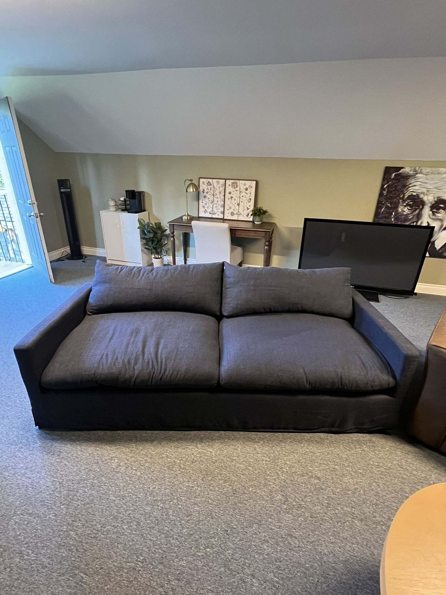 Nearly brand new couch purchased from world market. Only used for a few Airbnb stays. Message with any questions.