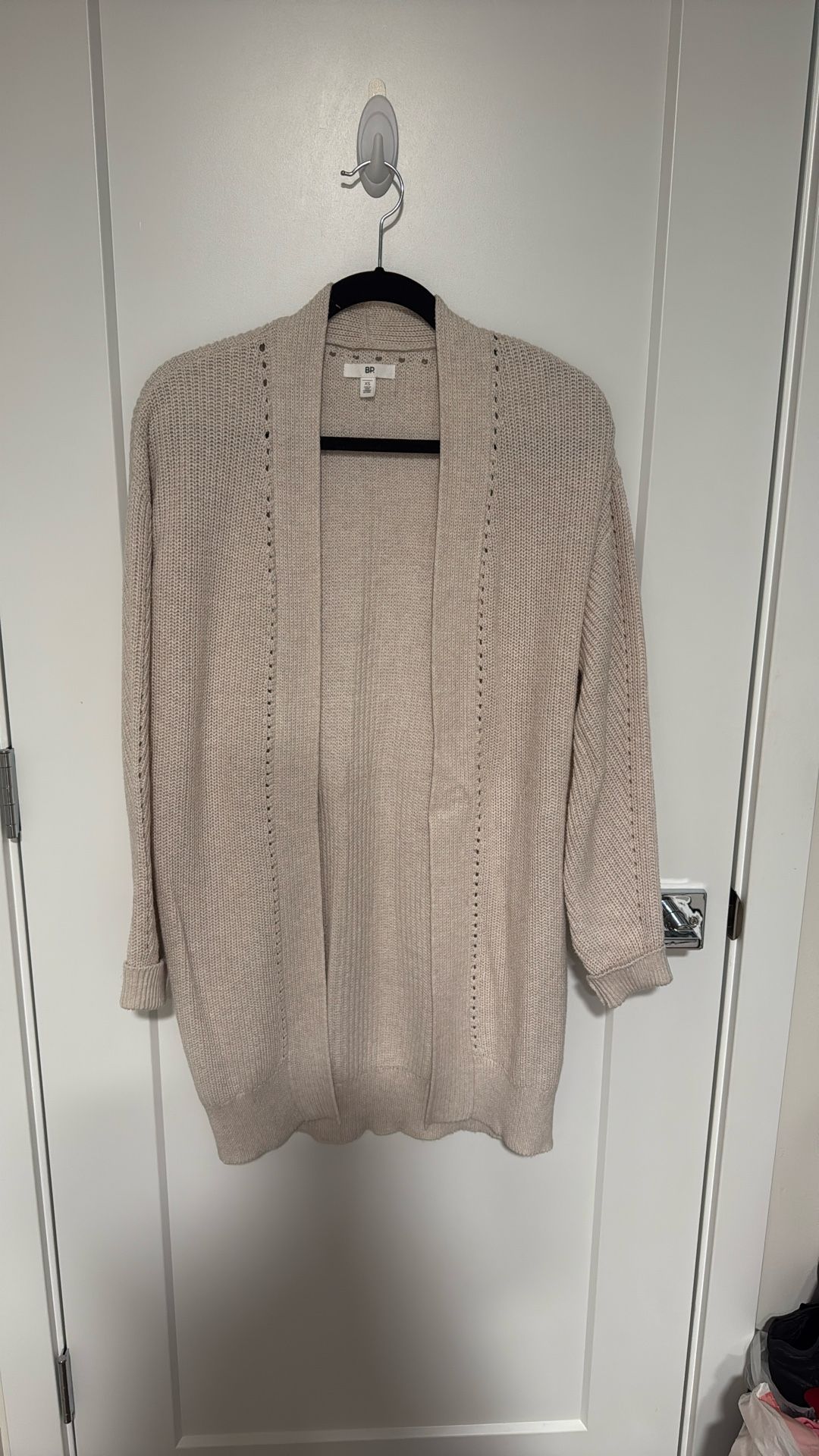 Women’s 100% cotton cardigan, size XS, can fit size S, bought at Nordstrom, worn twice. In good condition, from clean, pet/smoke free house.