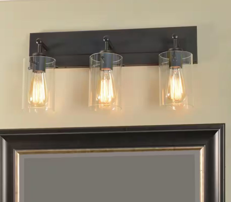 Regan 21 in. 3-Light Espresso Bronze Bathroom Vanity Light with Clear Glass Shades