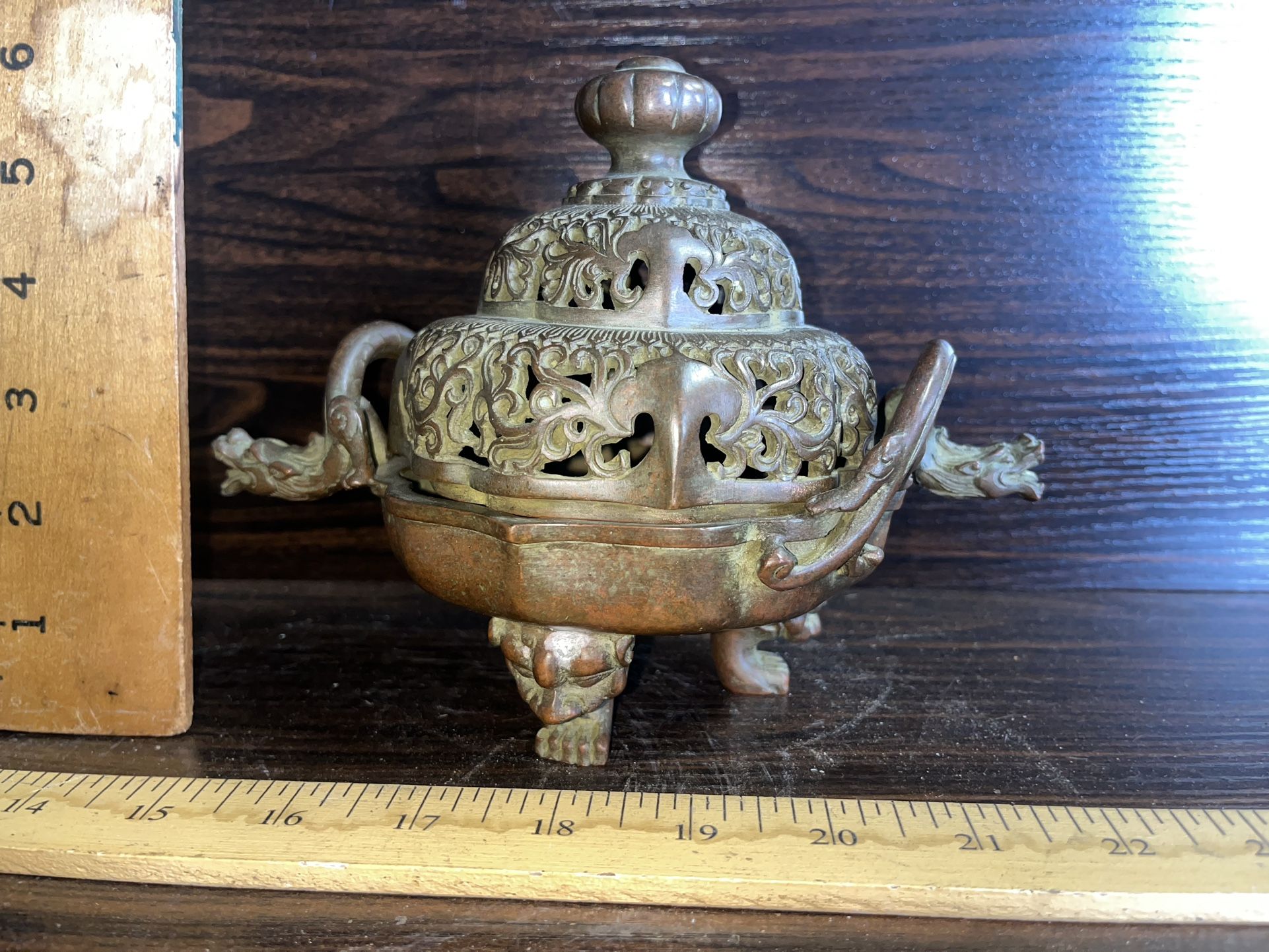 Chinese Bronze Censer Dragon Handles