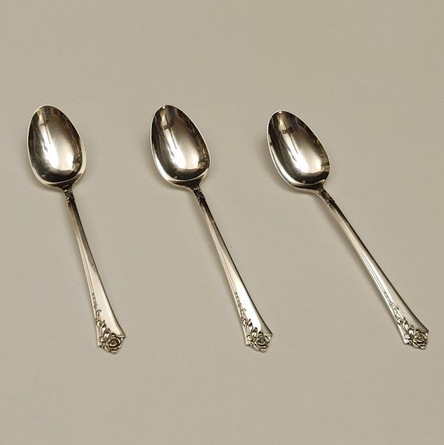 Antique Sterling Silver 925 Teaspoon Set of 3 Oneida Damask Rose Silverware Flatware Gold Silver Platinum Bullion Spoon Spoons 001