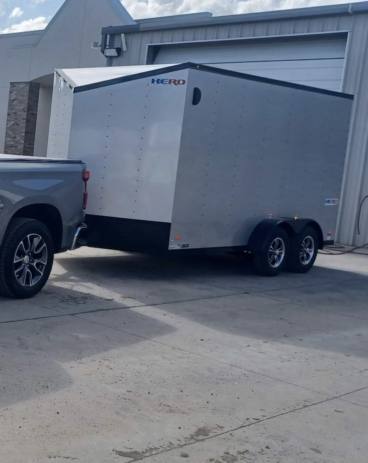 Used for camping only once! Comes with queen size air mattress, portable toilet, generator, AC unit, lights, 47” TV, propane camping grill, tie downs & wheel choke and straps for bike hitch.