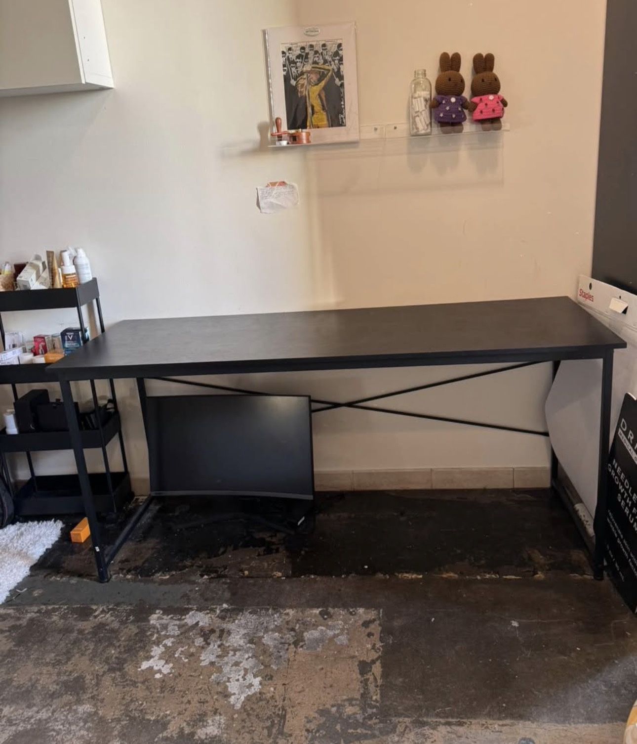 Perfect desk for an office or work space. I didn’t end up sitting the desk as much as I thought I would so I figured it would be best to get rid of it. L: 21.8 in W: 63 in H: 29.1