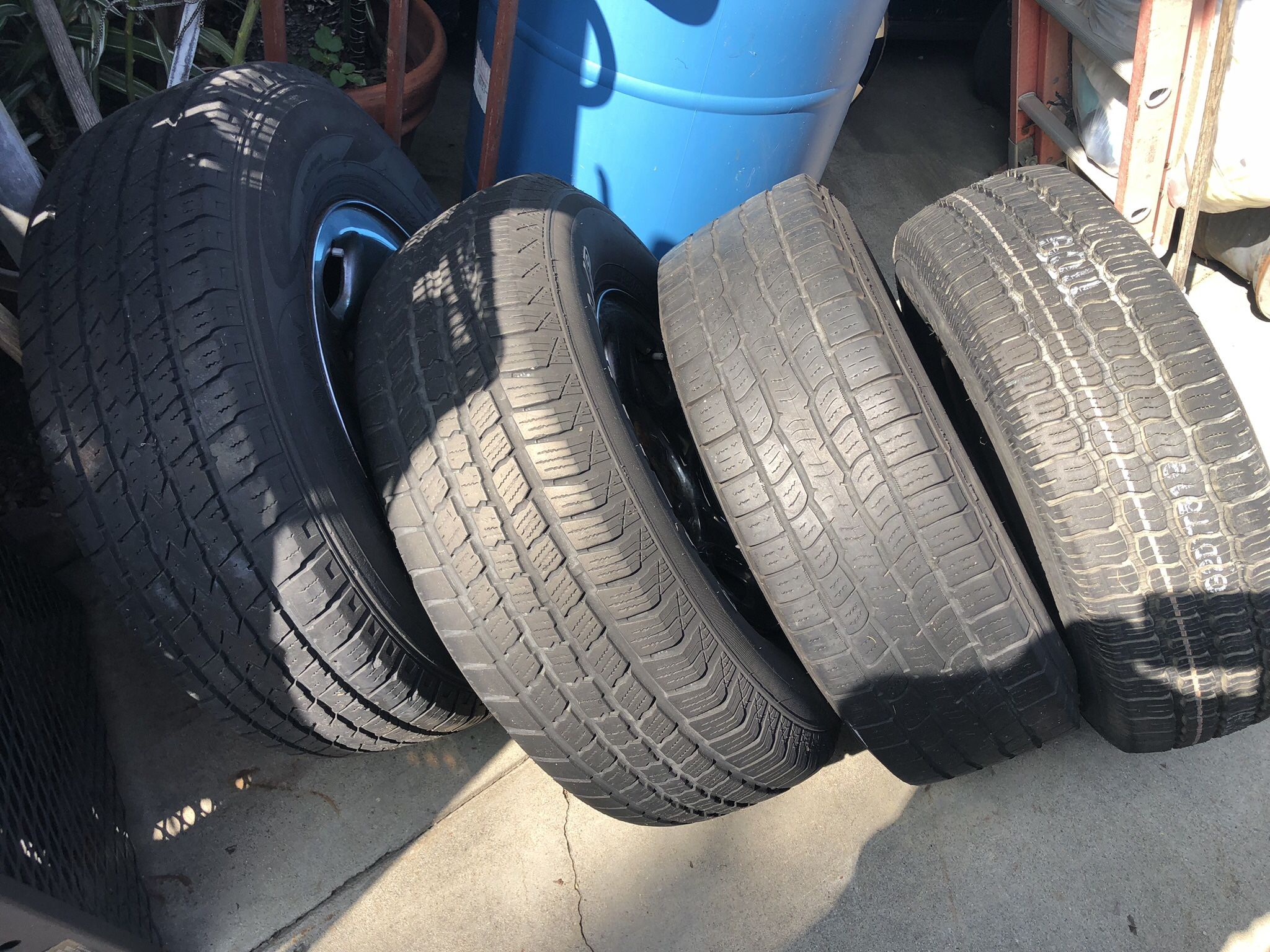 I’m selling a total of 4 tires, one of the tires has full tread and the other three have less tread as you can see in the pictures, Full tread $90.00 and the other ones $50.00 each. Rims are not included