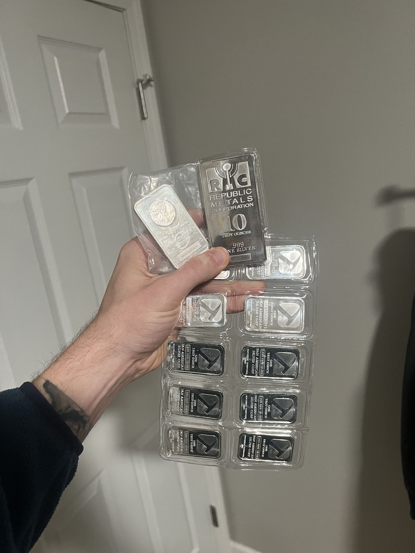 10z bar and 10 1oz bars available selling 1oz bars all together $850 for 10oz bar $850 for 10 1oz bars