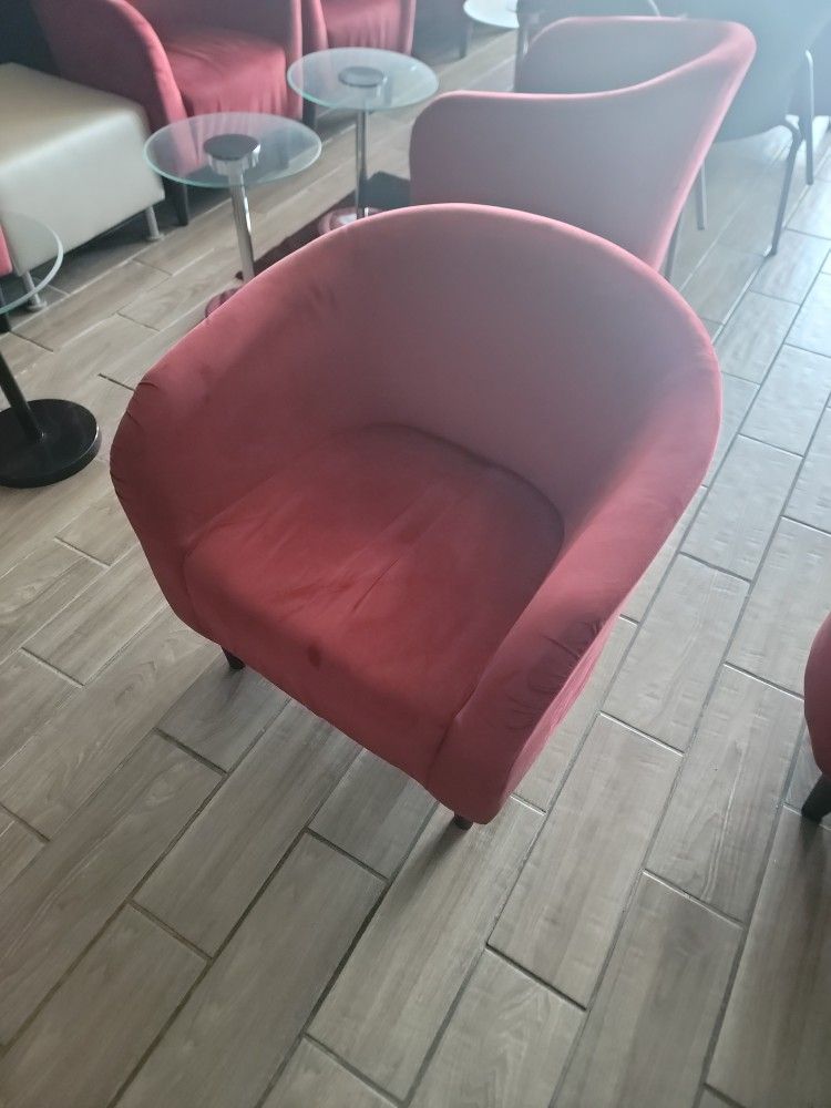 Set of 4 red chairs. Extremely comfortable and stylish. We have 4 to get rid of. Available immediately. Excellent condition.