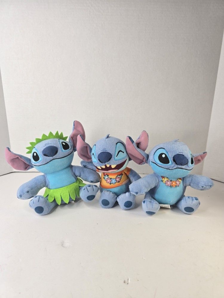 Lot Of 3 Small Lilo And Stitch Dolls Plush Stuffed Animal Hawaiian Theme 6”