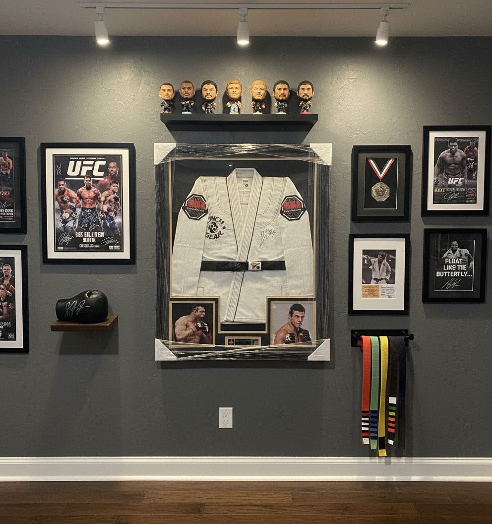Custom Framed 42.5x32.5 Both Gi and Black Belt comes with MMA Signatures Hologram Authentication. Guaranteed to pass PSA DNA Authentication as they pass MMA Signatures Hologram Authentication.