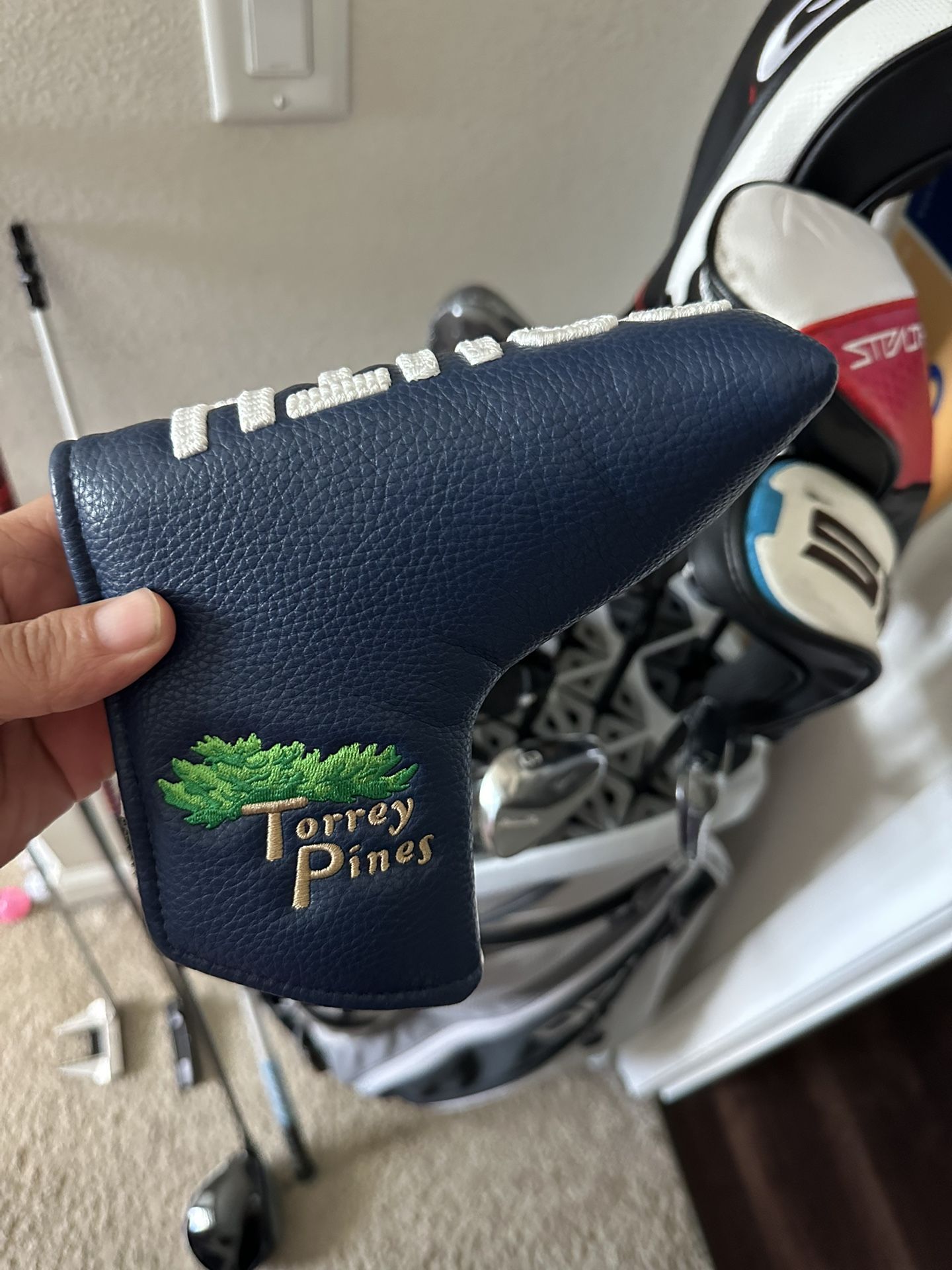 Torrey Pines Putter Headcover should fit all blade putters bought from the farmers insurance open over the weekend had two magnets to secure the putter. Brand new