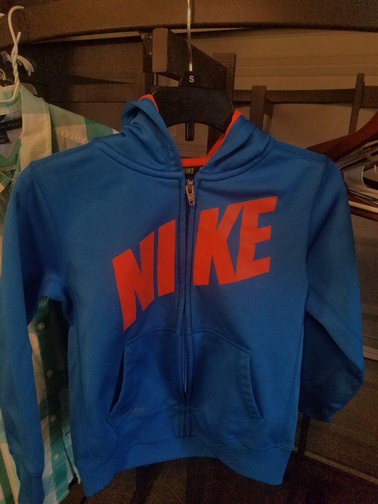 Nike & Addidas, A&F, Champions, sweatshirts and zipper jackets, semi new & lightly worn. Let me know size you need at $4 each. It's a bargain not even at the second hand store you get them at this price. I have brand new one too.