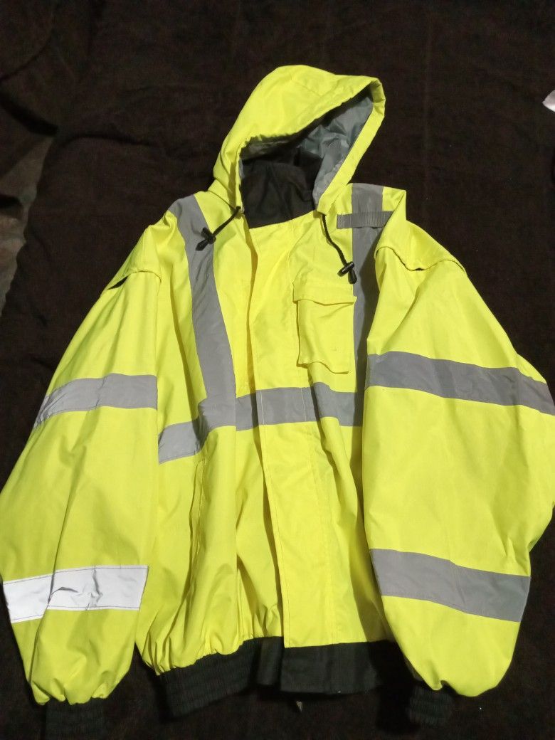 3x high-viz jacket,lined with detachable sleeves. No tares,no stains. I'm asking $60.00. Make offer.
