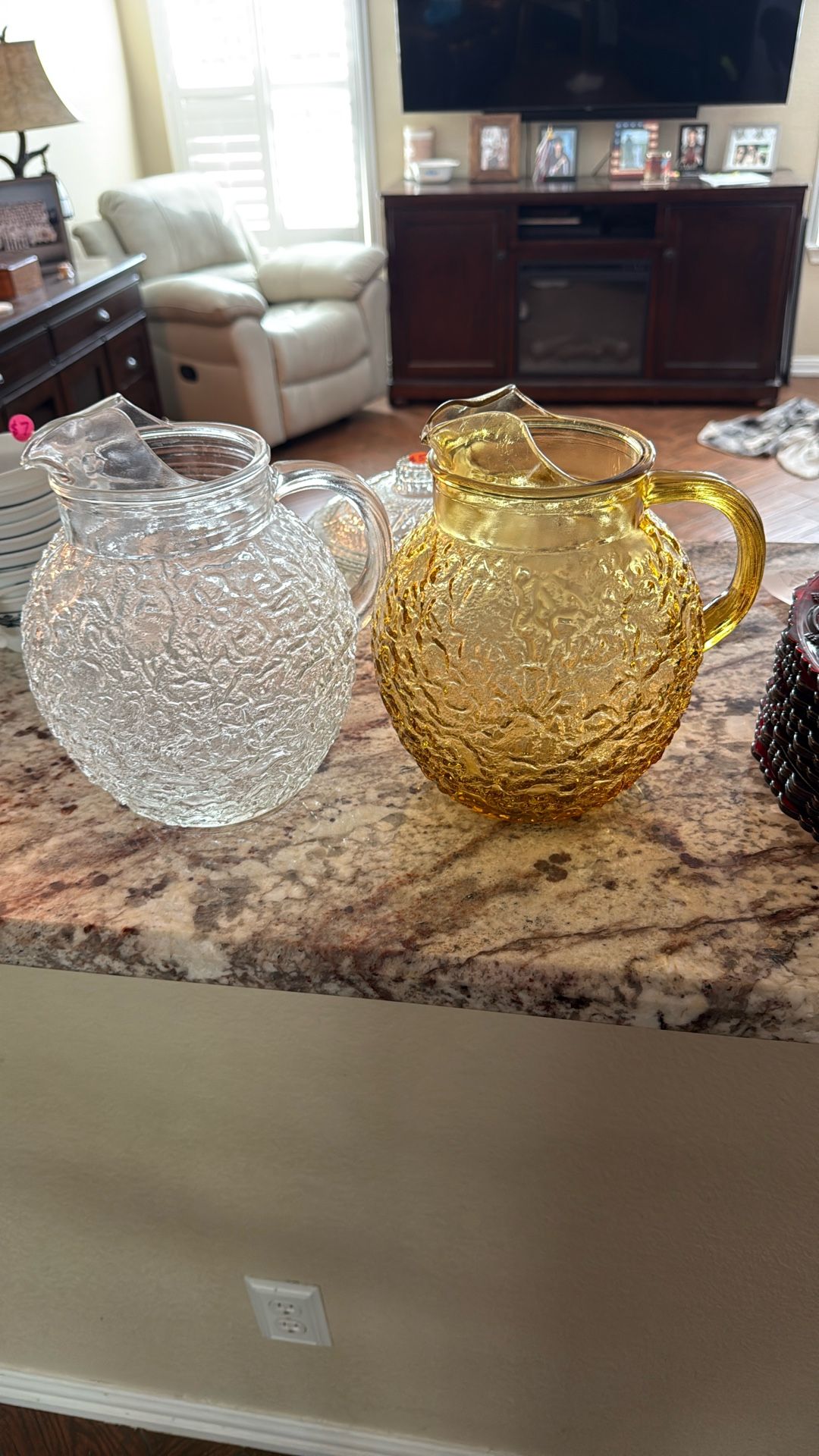 Two anchor hocking glass pitchers