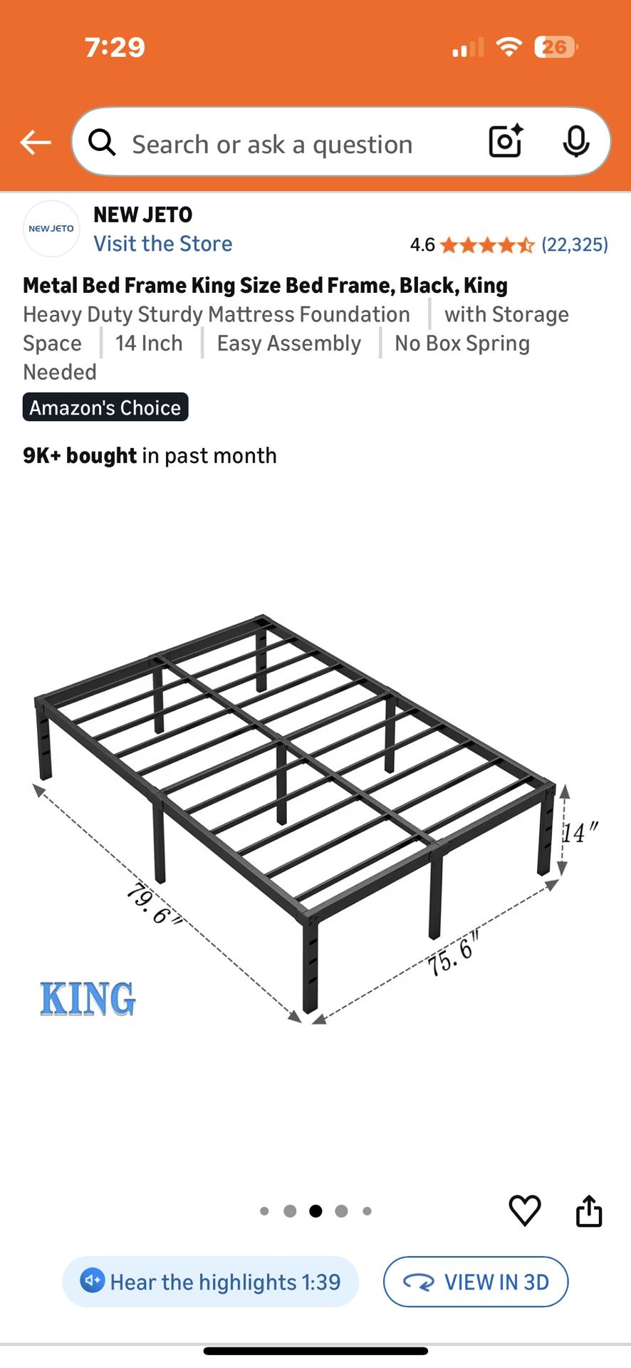 Simple easy to put together bed frame. I have it disassembled in a bag so it can fit in any car. Had it about 6 months before I got my new bed. Very sturdy, no issues. Originally was $73.