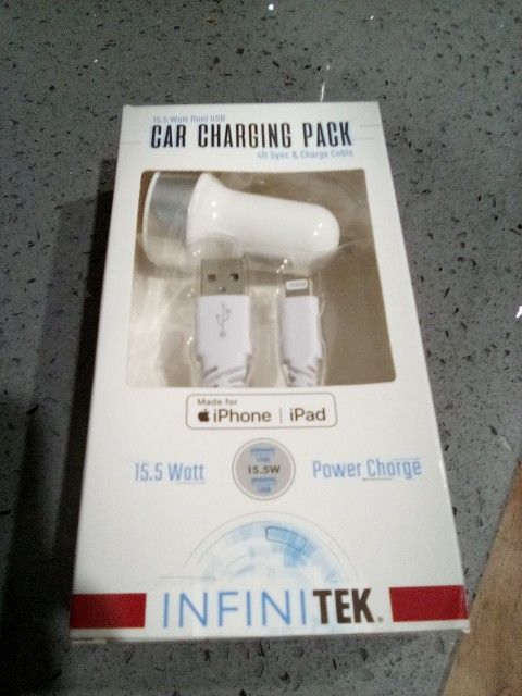 Brand New car charging pack for I phone and I pad b new in box .