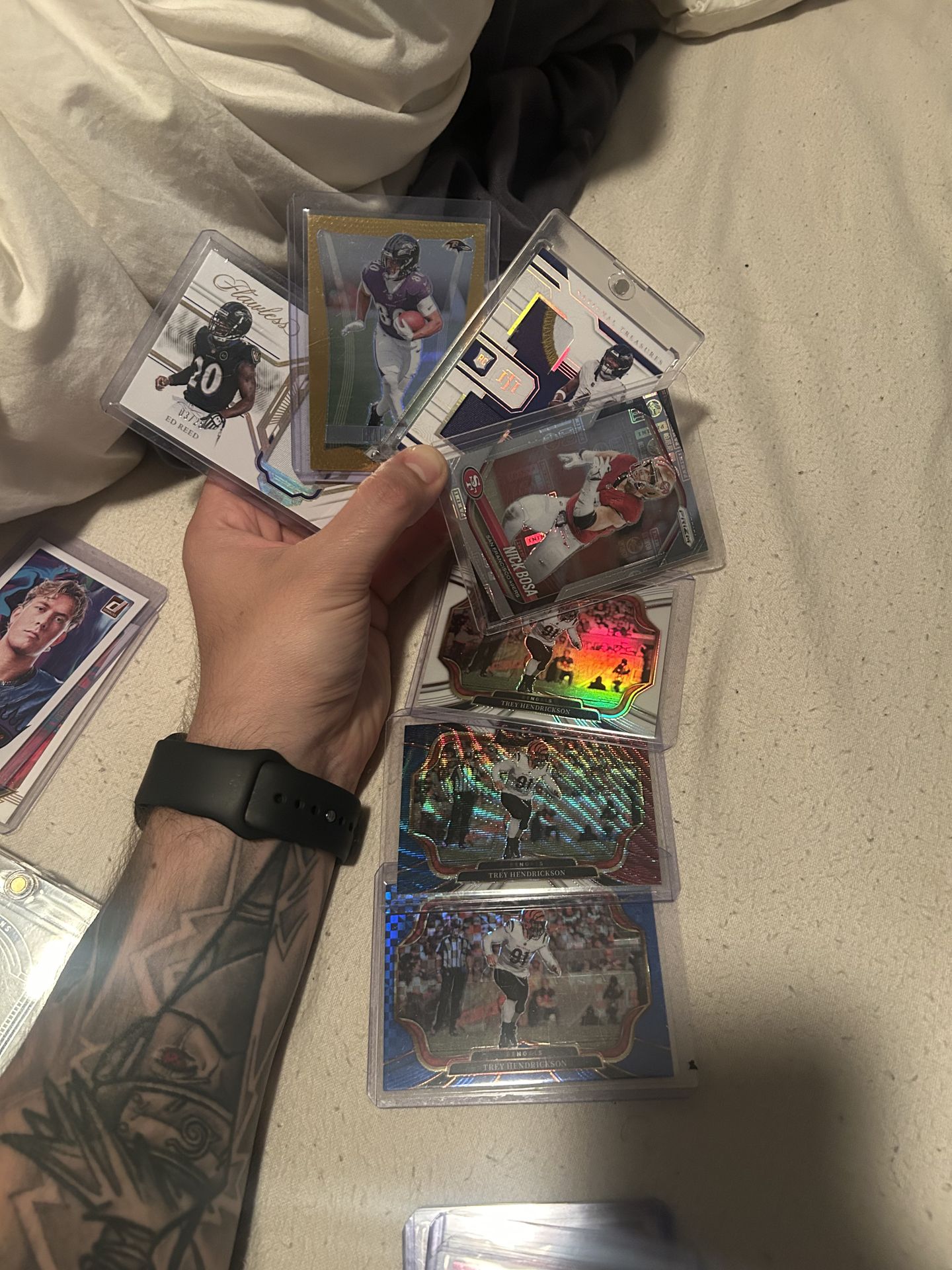 Likely Prizm Gold /10 Nick Bosa Panini Print /20 Hendrickson Field Level lot Zay flowers patch NT Ed Reed Flawless Patch Seeking to sell as a lot or individuals, shoot offers