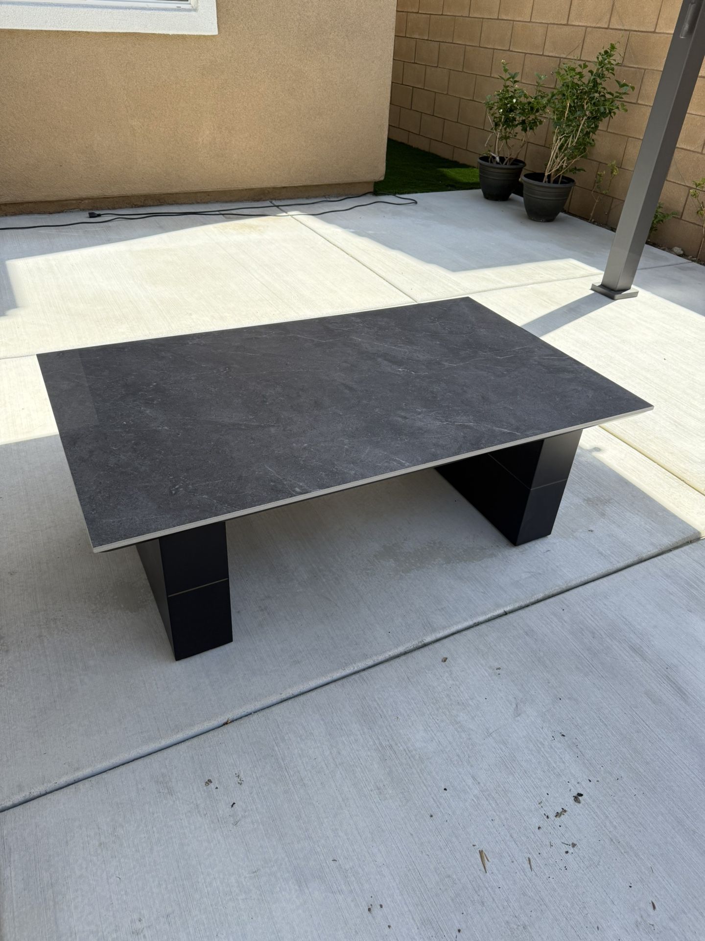Outdoor Coffee table Made With Lightweight Aluminum to Ensure No Rusting. Permastone® Tabletop is Ultra-durable, Non-porous, and Scratch Resistant. 50 length 30 width 17 height Made for outdoor patio