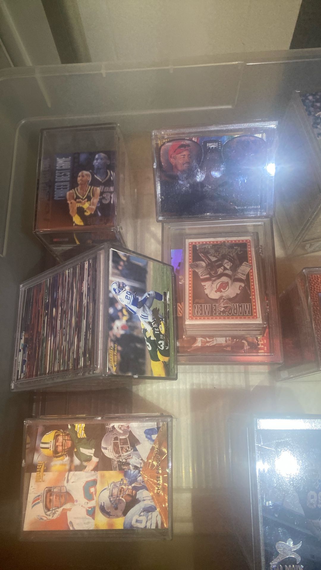 Baseball ⚾️ 1990.’s Football 🏈 1990.’s Basketball 🏀 96/97 year some Early than that And Some Hockey 🥅 All upper Grade Sports Cards, Full Rubber Made Container, I Priced a Few and they’re selling for over $30.00 each Final Price Cut $80.00 Firm Already dropped price less than Half, Only reason I’m Basically giving them away is needed a A/C unit