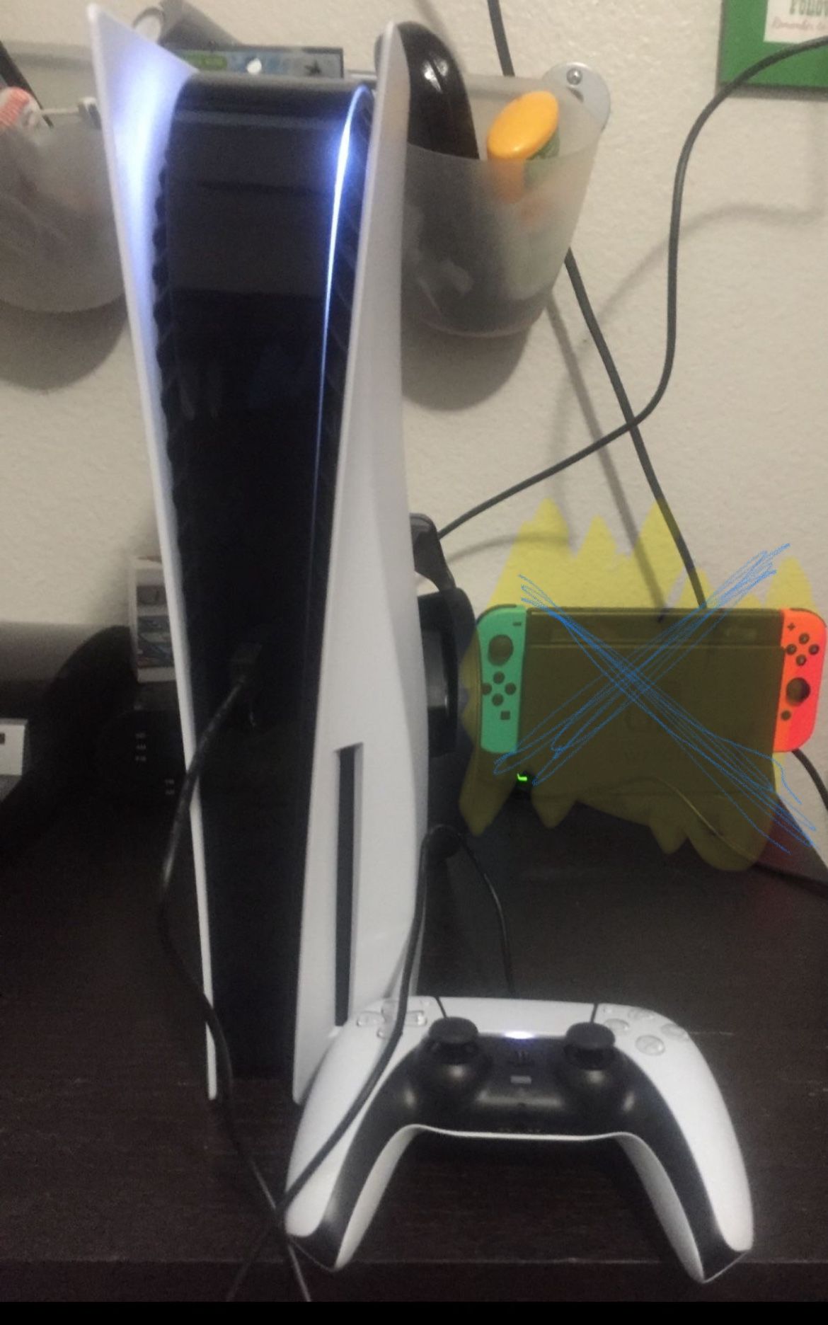 Comes with ps5 controller and a a purple controller, razor keyboard and mouse, Astro 10 headphones and a black panther mouse pad Sold all together Works perfectly just don’t have time anymore to play