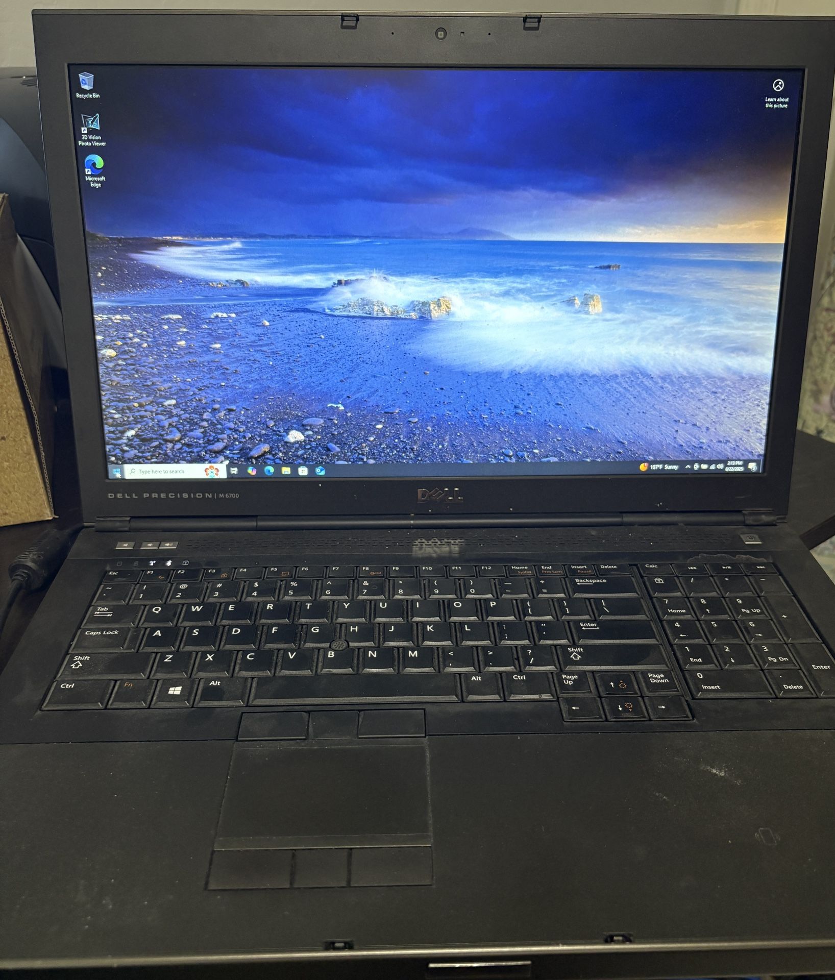 Dell Precision M6700 512 GB SSD Hard drive 24 GB RAM Intel Core i7-3840QM CPU @ 2.8 GHz quad core / 8 threads DVD +/- RW 17.3" FHD Display 1920 x 1080 Wireless Gigabit ethernet 2 usb 2 2 usb 3 8 in 1 memory card reader docking port sim express card hdmi out display port out vga out room for 2 more laptop hard drives inside.