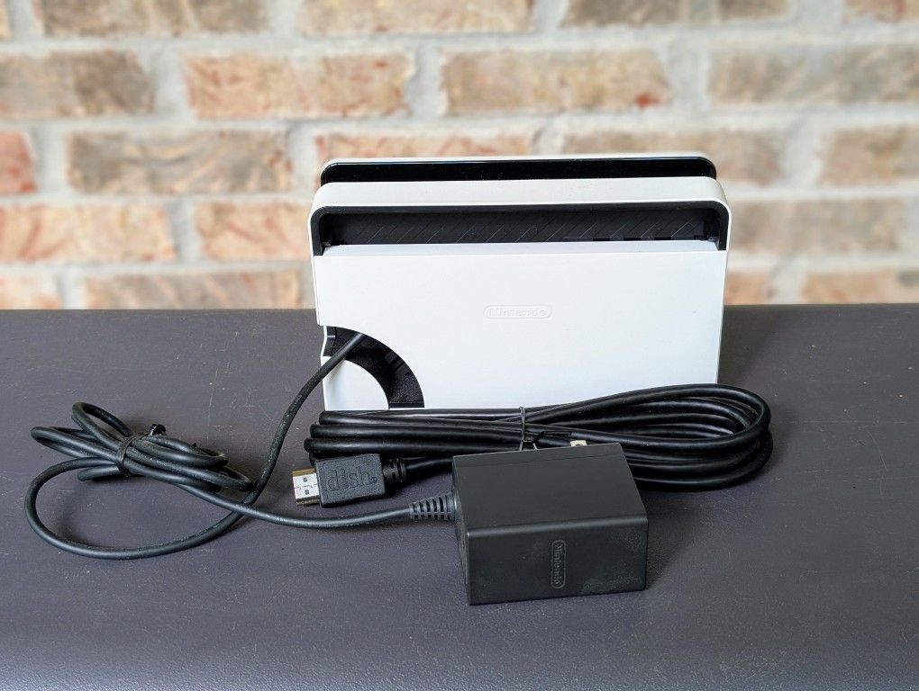 Up for sale is a like new, white OEM Nintendo Switch OLED Dock. Also included are the Nintendo OEM AC power adapter as well as an HDMI cable. This dock is ONLY compatible with the 2021 Nintendo Switch OLED model. It is NOT compatible with the original 2017 Nintendo Switch, Switch Lite, or the brand new Nintendo Switch 2. This dock is perfect for any Nintendo Switch OLED owners who want to quickly be able to switch between two different rooms or TVs to play their Nintendo Switch OLED on without having to completely unhook their docking station from their main TV and move it to another room or TV to play on.