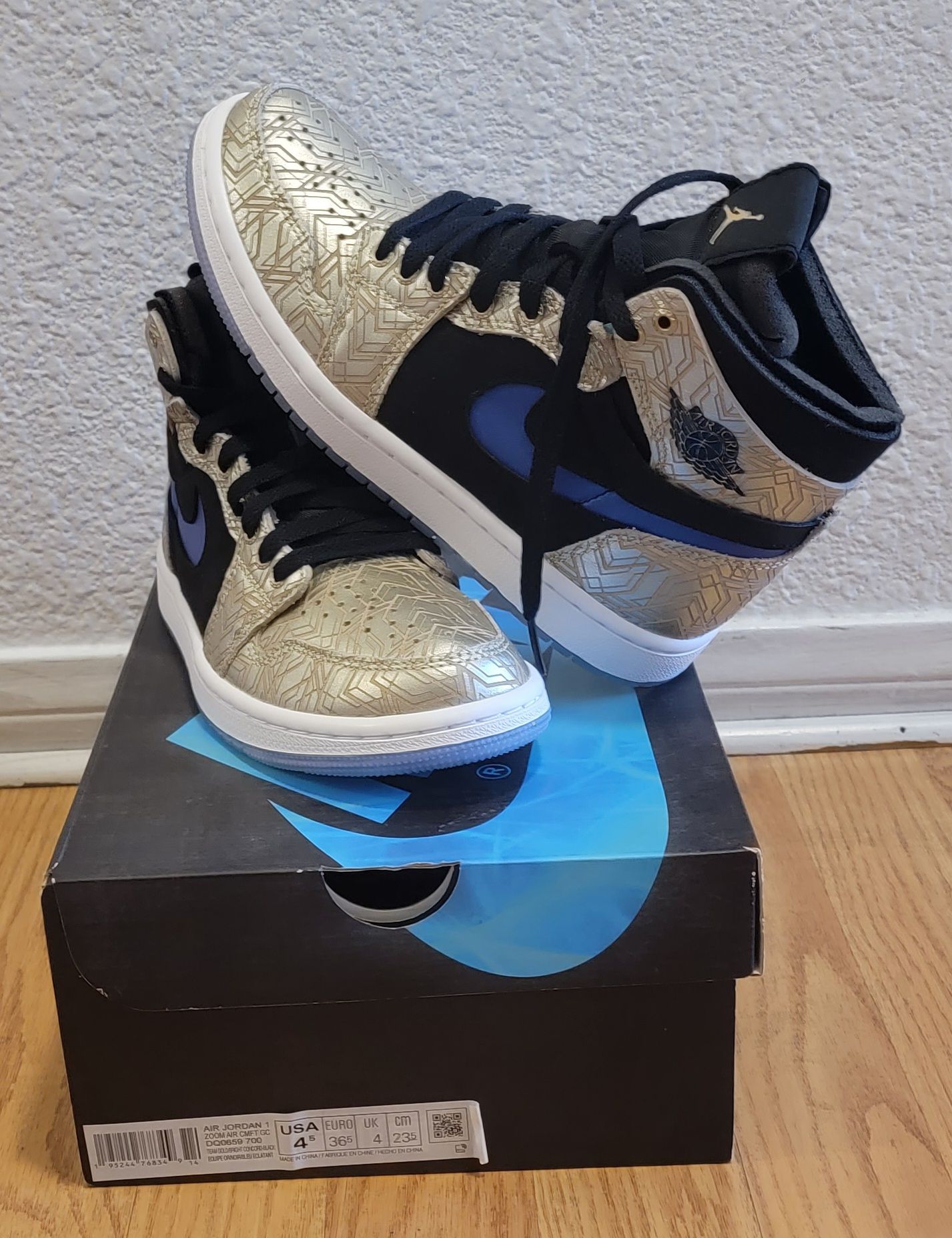 Jordan 1 High Zoom Gold Laser Size 4.5y or 6 women's Ds og all